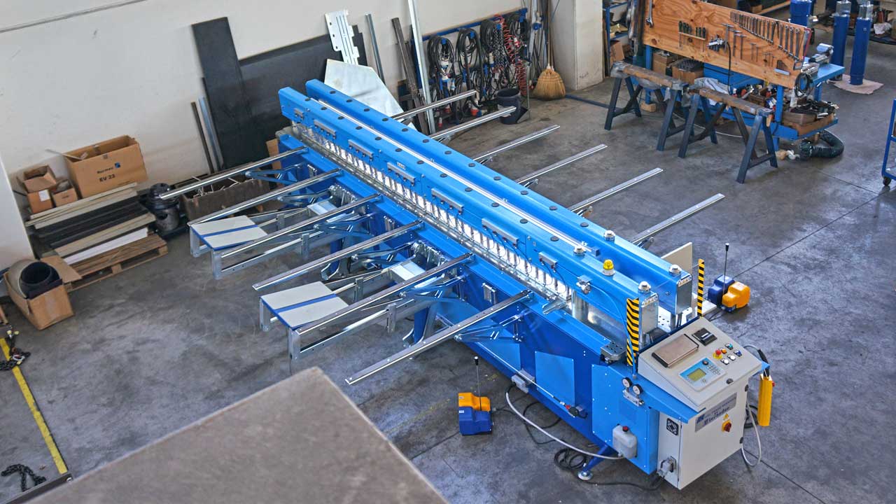 It is equipped with pressers divided into segments, each with hydraulic clamping, so as to ensure uniformity of sheet clamping, even in the case of short pieces of sheet.