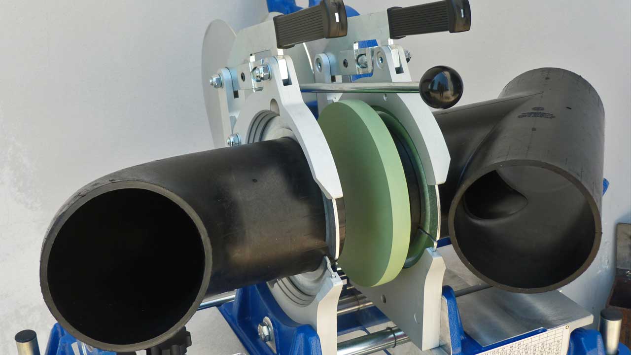 Saldatrice portatile manuale idonea alla saldatura testa-testa di tubi e raccordi in polietilene (PE) e polipropilene (PP) per scarico.