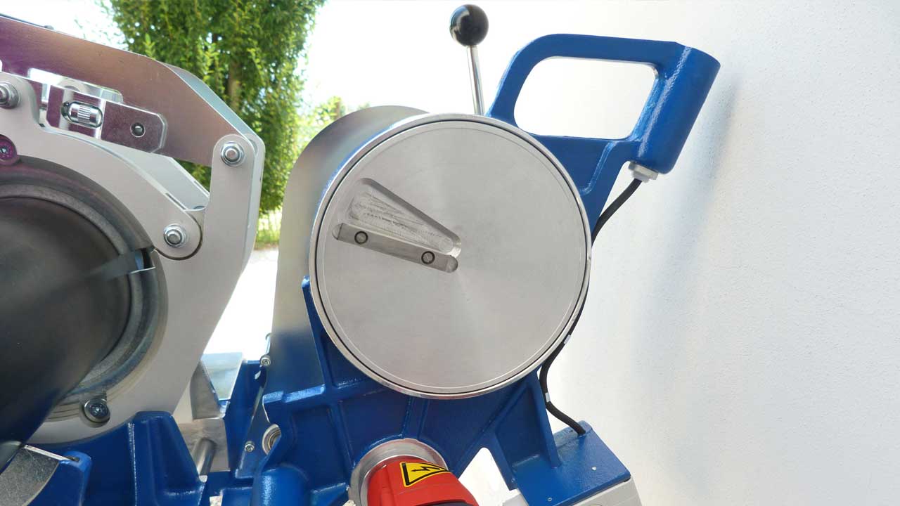 La leva di traslazione, oltre a a compiere il movimento, agisce su di un indice che riporta su scala graduata i valori del tubo da saldare.