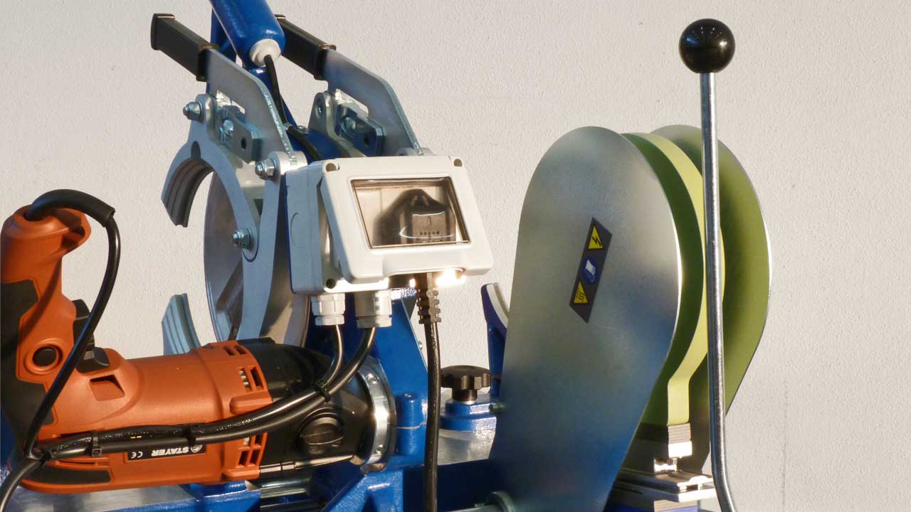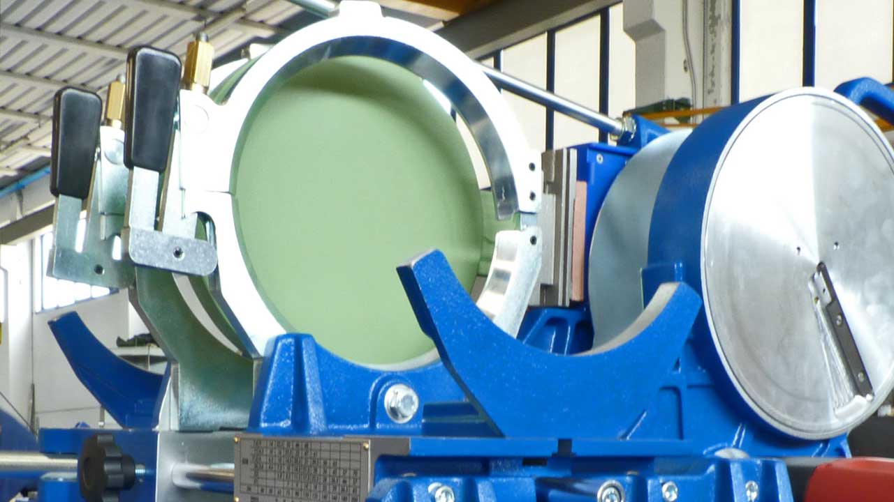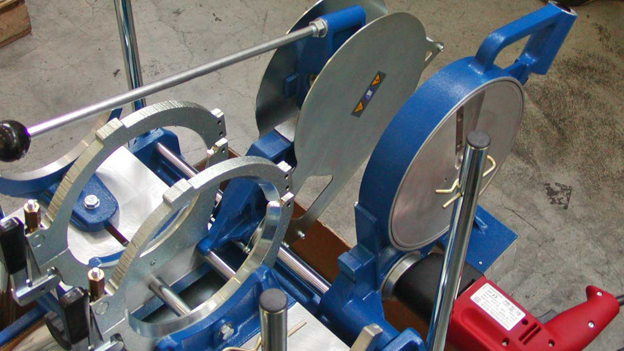 Saldatrice portatile manuale idonea alla saldatura testa-testa di tubi e raccordi in polietilene (PE) e polipropilene (PP) per scarico.