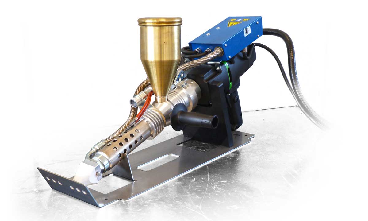 Il trapano motore oltre aziona l’alimentazione del grano e permette l’estrusione dello stesso nella camera di estrusione sotto forma di cordone plastificato. Il materiale sciolto prenderà forma nel pattino in PTFE sagomato a seconda delle esigenze.
