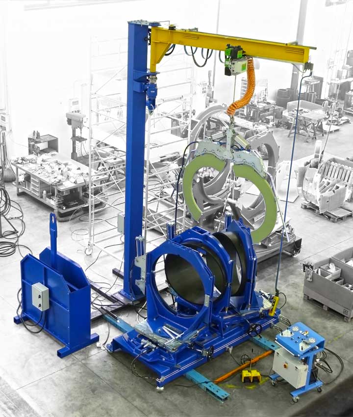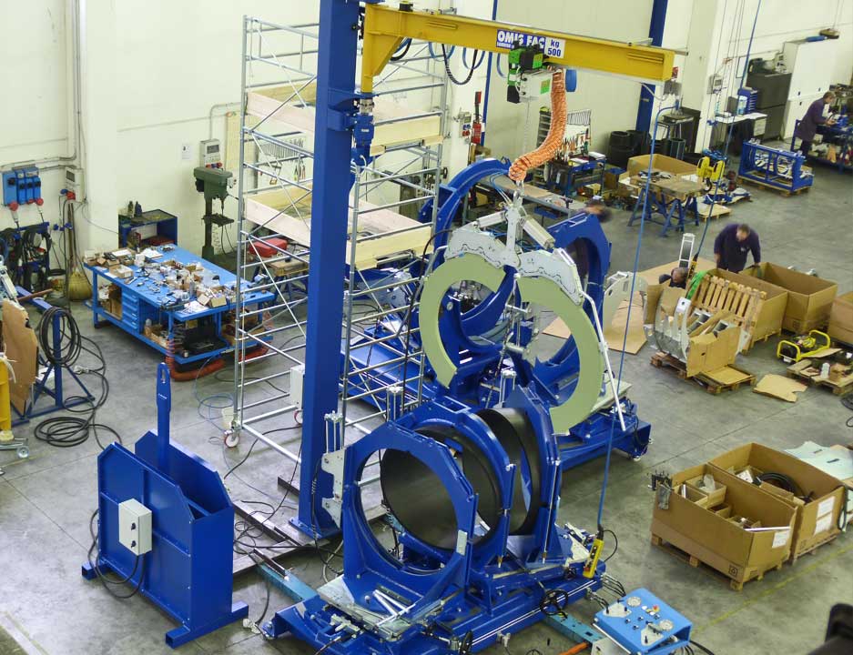 T2 WELDING produce diversi modelli di macchine per la produzione di curve a settori per teleriscaldamento. Attualmente la saldatrice più grande raggiunge il diametro 1600 mm.