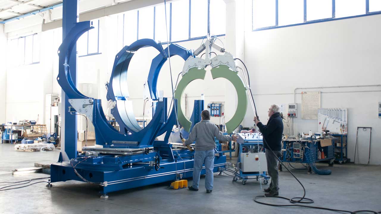 Macchine progettate per la costruzione di curve a settori di tubazioni per il teleriscaldamento (in PE con tubo interno in acciaio).