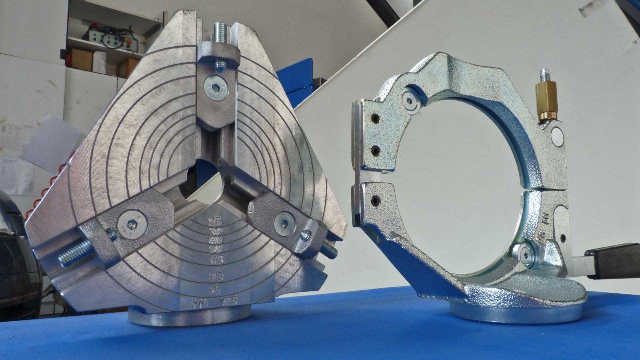 - Due ganasce rotabili d. 125 mm adatte alla saldatura testa a testa e alla fabbricazione di curve a settori con differenti raggi di curvatura.