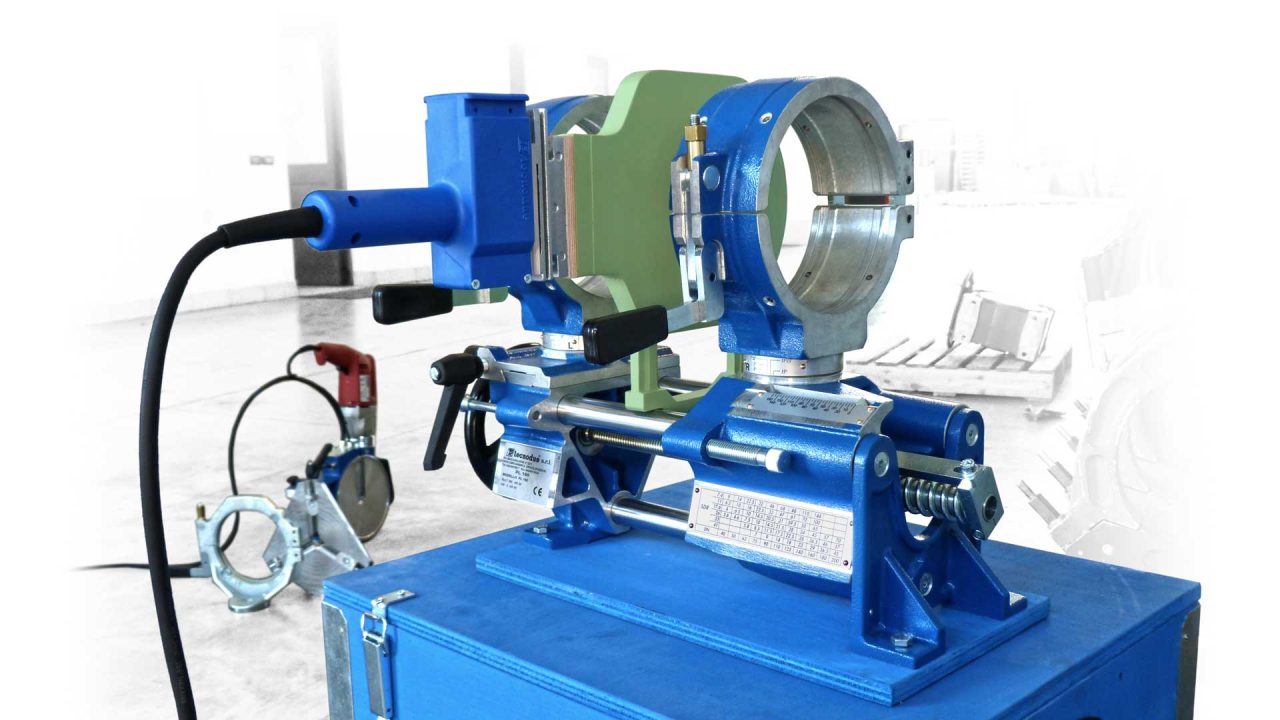 Saldatrice testa a testa a movimento manuale per condotte in pressione (acquedotti, impianti irrigazione, … ) in PE (polietilene) e PP (polipropilene).