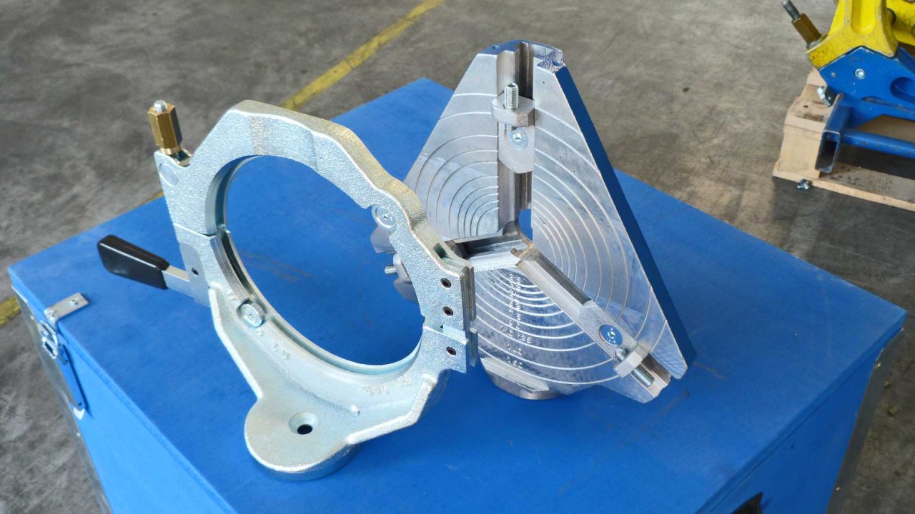 • Morsa stretta destra/sinistra d. 160 mm per raccordi e relative riduzioni gamma 40-140 mm.