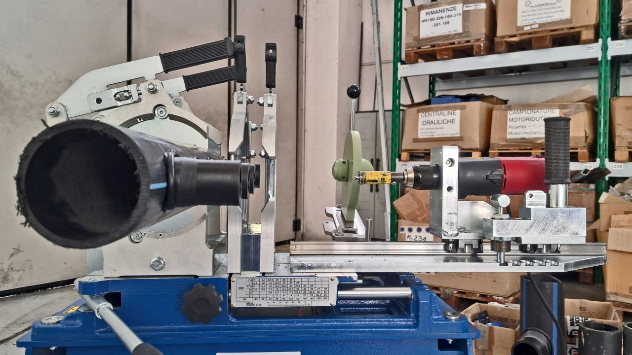 Saldatrice manuale per la realizzazione di Tee ridotti (derivazioni) a multi salto in PE e PP. Utilizzando apposite matrici è possibile realizzare un Tee ridotto con una sola saldatura!