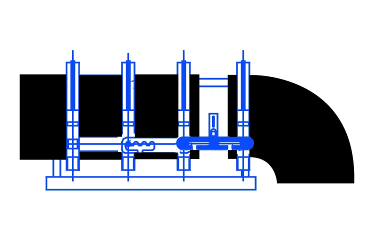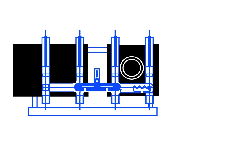 ![]() | In caso di saldatura con raccordo a codolo lungo è possibile posizionare il raccordo in terza morsa e in caso di necessità rimuovere il cappello della quarta morsa. |